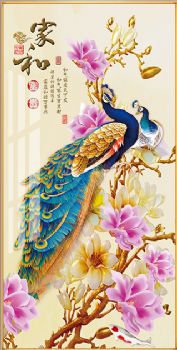 • 高档新中式孔雀牡丹富贵装饰画轻奢晶瓷画家和万事兴装饰画铝合金框