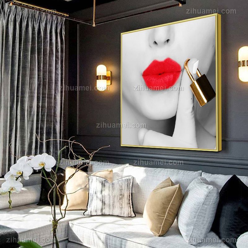 • 客厅装饰画玄关装饰挂画酒店酒吧壁画晶红唇美女人物系列瓷画