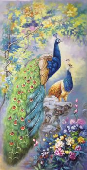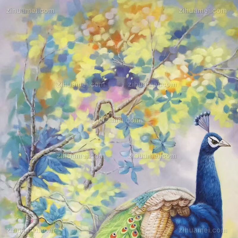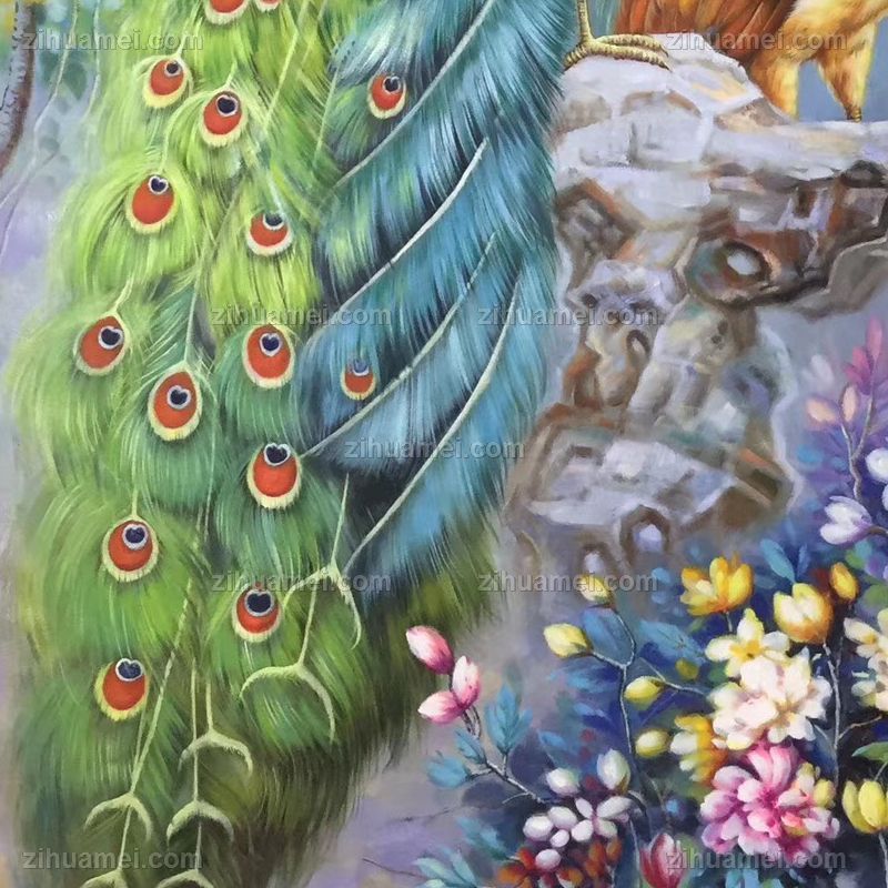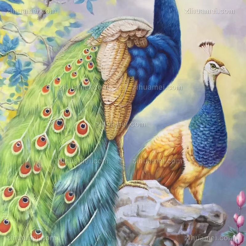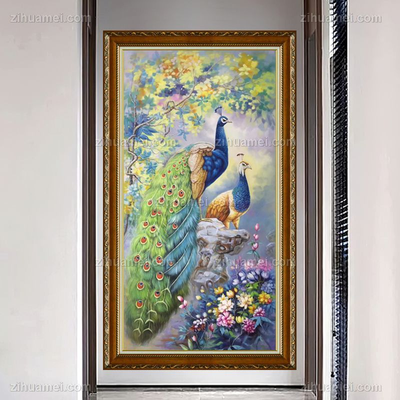 • 实力画家精品竖幅双孔雀油画作品适合酒店别墅玄关挂画手绘油画实木画框