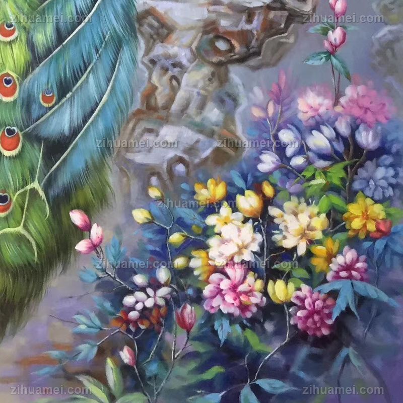 孔雀玉兰花纯手绘新中式客厅油画实木外框 手绘