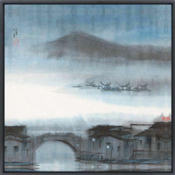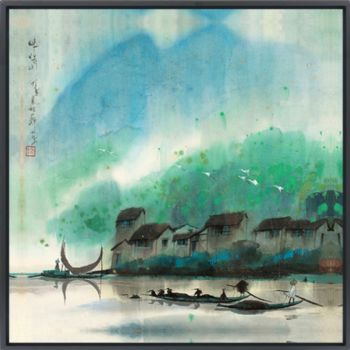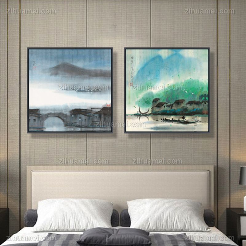 晶瓷画新中式装饰画丹青山水画晶瓷画晶瓷画铝合金外框画框装饰画画框