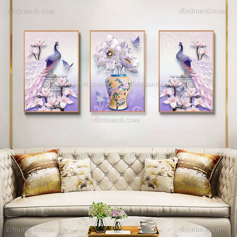 晶瓷画孔雀装饰画晶瓷画晶瓷画铝合金外框画框装饰画画框