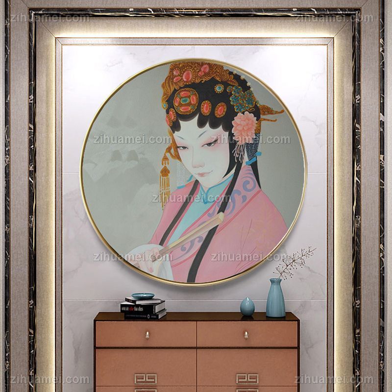 • 现代高档新中式京戏人物图晶瓷装饰画铝合金框客厅走廊挂画