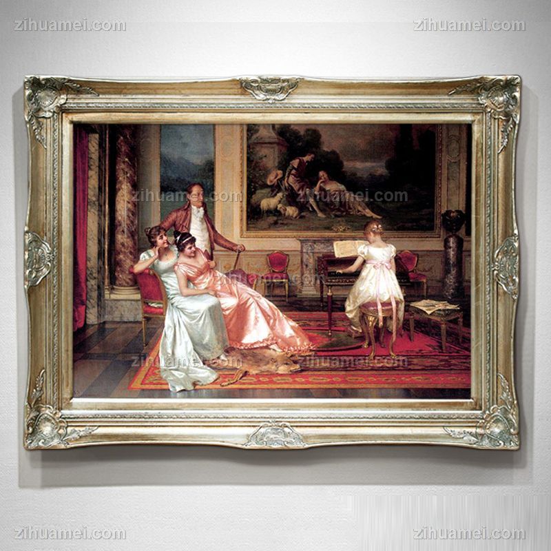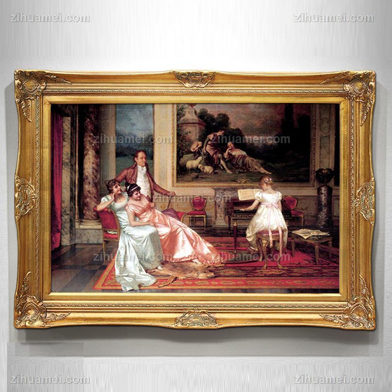 • 欧式贵族生活场景钢琴演奏会手绘油画酒店会所装饰画欧式宫廷人物油画别墅客厅挂画