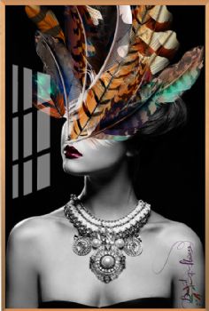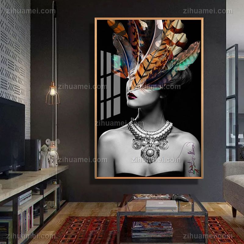 • 人物羽毛头饰美女画装饰画高档轻奢晶瓷画铝合金框现代简约挂画