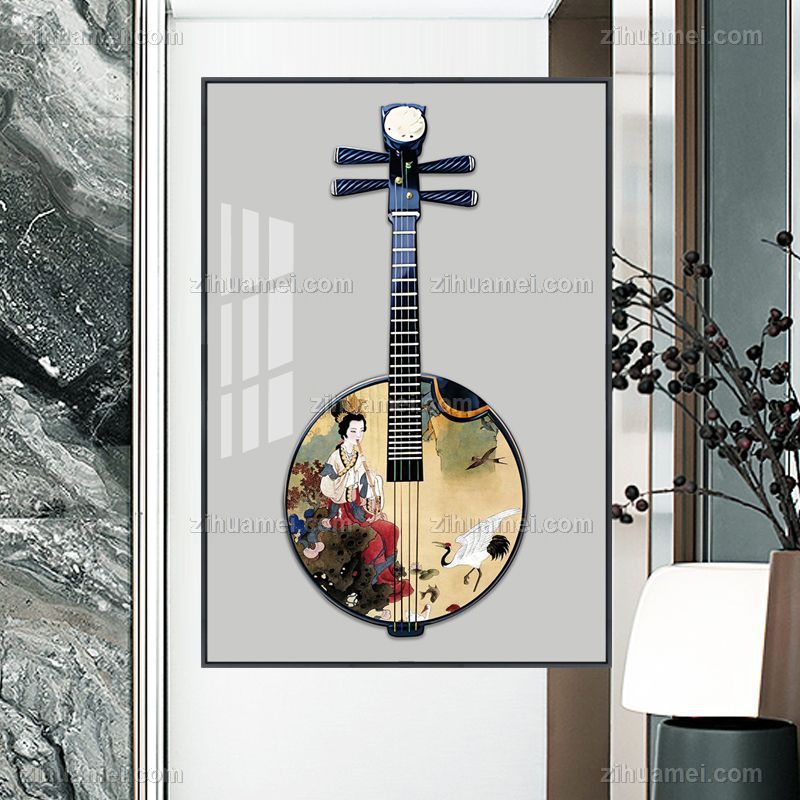 晶瓷画琵琶新中式挂画晶瓷画晶瓷画铝合金外框画框装饰画画框