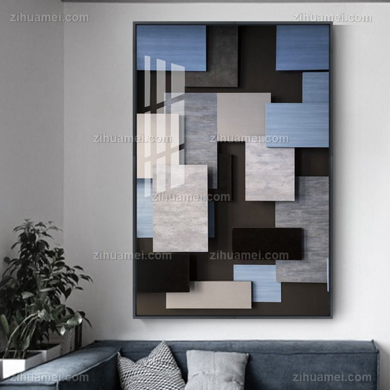 • 现代简约客厅几何抽象方块艺术高档轻奢晶瓷画抽象玄关走廊挂画