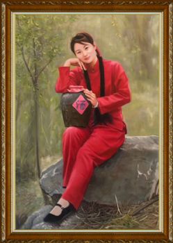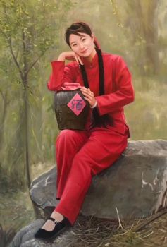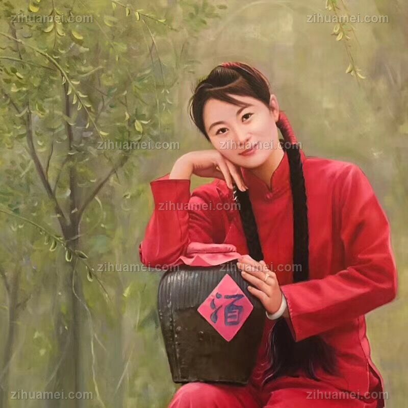 • 手绘油画 中式油画 人物画 女儿红与酒 写实油画 美女油画 美女油画 实木外框