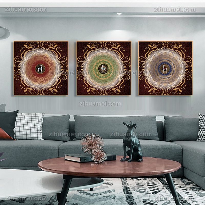 晶瓷画平安吉祥鹿挂画晶瓷画晶瓷画铝合金外框画框装饰画画框