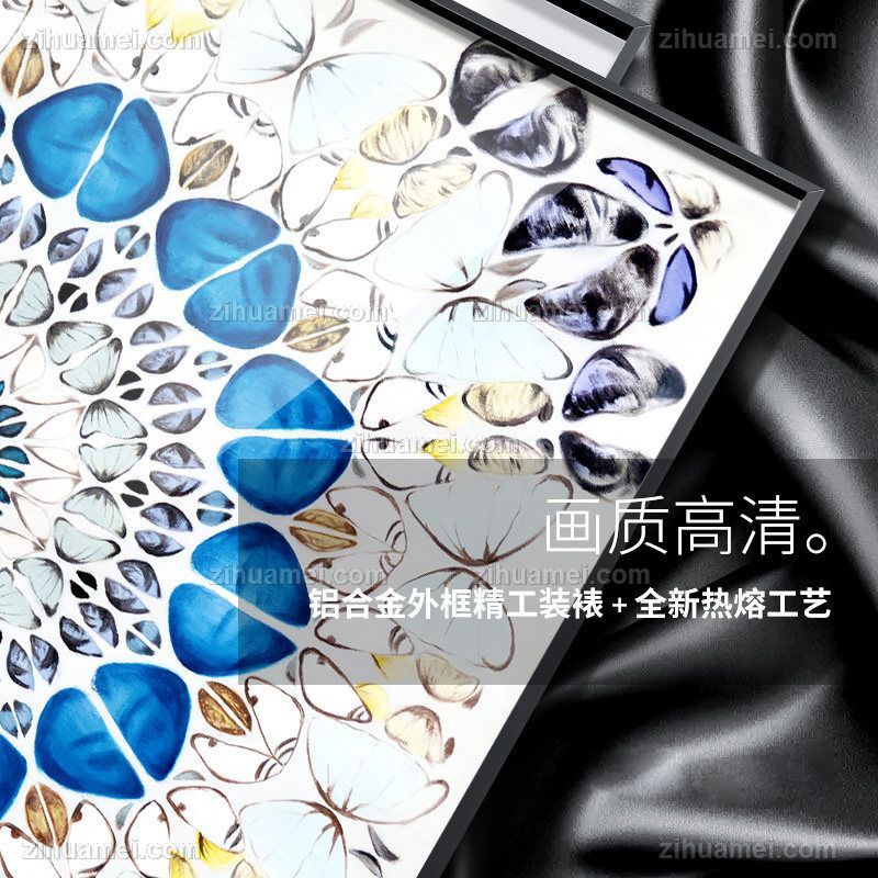 晶瓷与金属的结合,诠释家居装饰新风尚。晶瓷画,顾名思义不但有像水晶一样的通透,更有像玉瓷一样的无暇。画与画固为一体,中间没有空气与杂质、晶莹剔透、碧洁无暇。