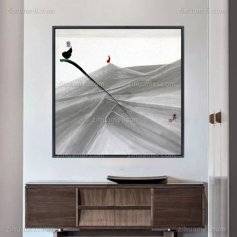 • 极素极简艺术高档水墨中国风晶瓷画装饰画铝合金框现代禅意修行画
