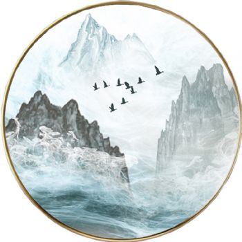 • 铝合金框金属圆形山水画高清微喷轻奢晶瓷画装饰画现代简约客厅样板房挂画