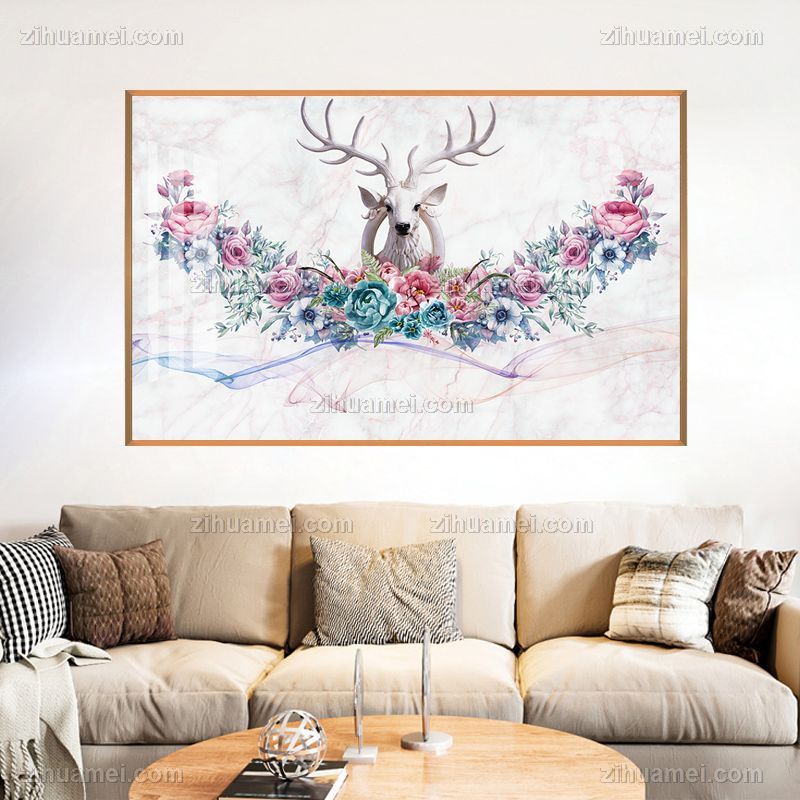 晶瓷画一路平安鹿图画晶瓷画晶瓷画铝合金外框画框装饰画画框