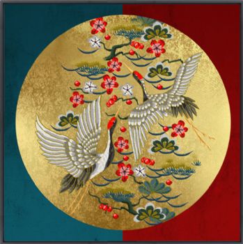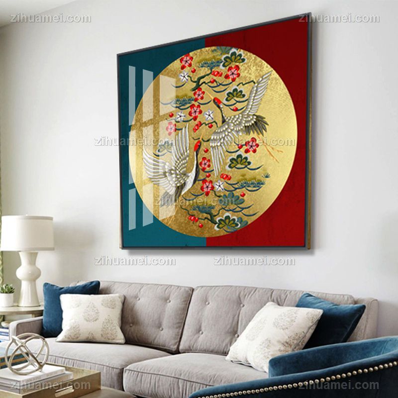 晶瓷画新中式仙鹤图晶瓷画晶瓷画铝合金外框画框装饰画画框
