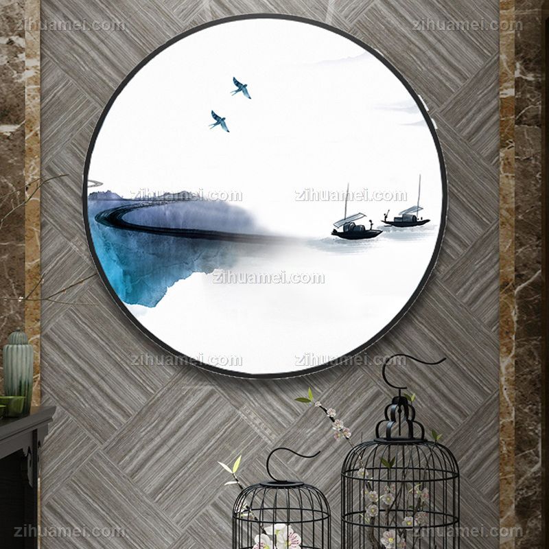 晶瓷画中式禅意风景画圆角铝合金外框黑色铝合金金属外框画框外框多颜色可选