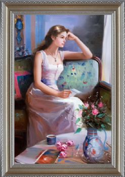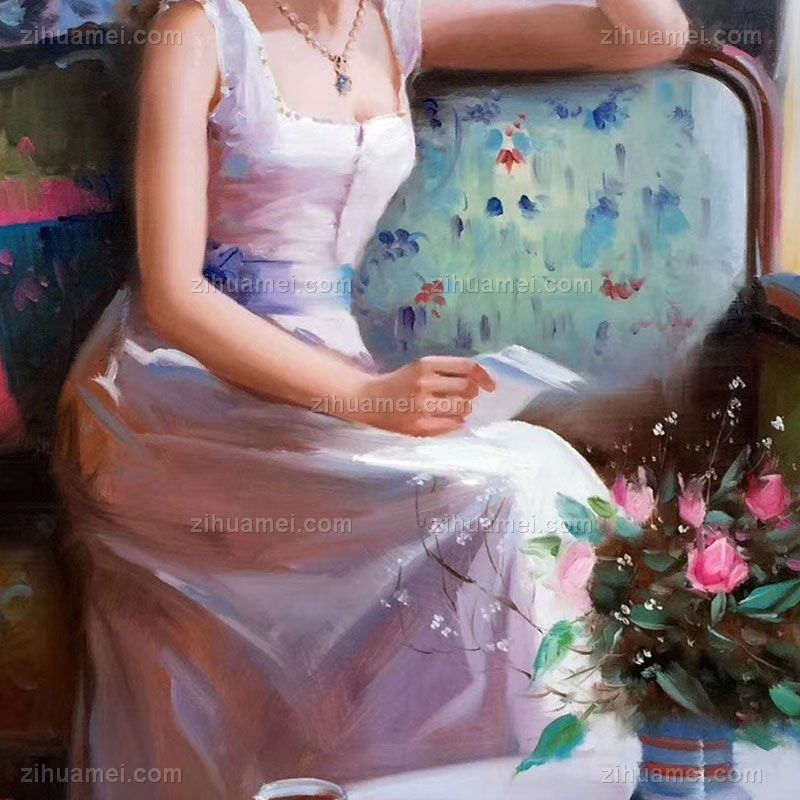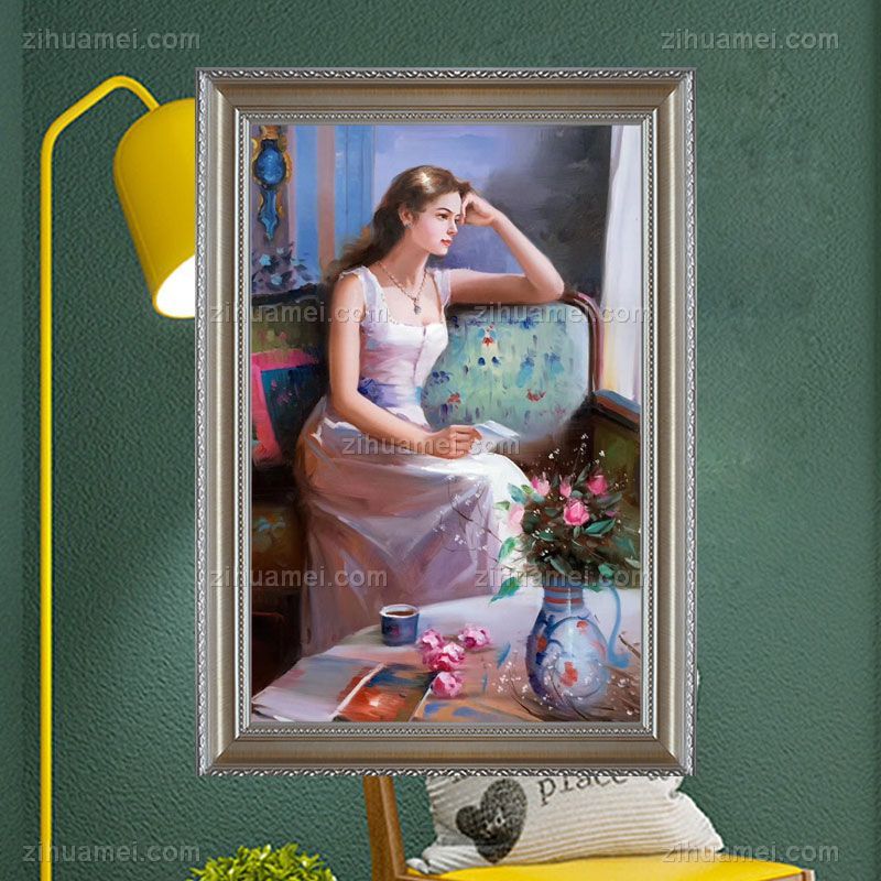 • 思索中的女孩人物油画会所装饰画客厅挂画卧室挂画欧美人物画手绘油画