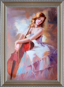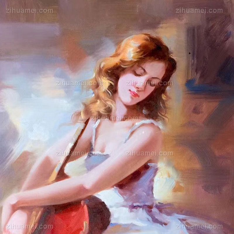 • 手绘抽象拉大提琴的女孩人物油画会所装饰画客厅卧室玄关挂