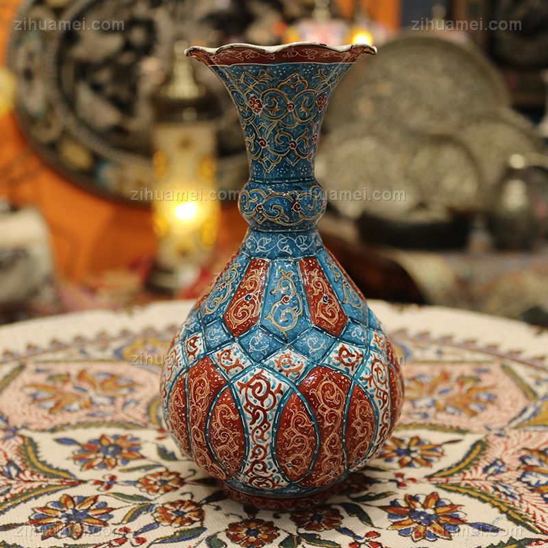 • 伊朗传统铜胎珐琅工艺16CM伊朗纯手工米娜mina摆件made in Iran