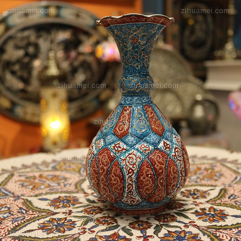 伊朗波斯纯手工艺品摆件米娜mina陶瓷酒壶花瓶