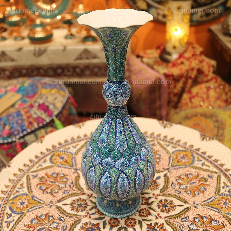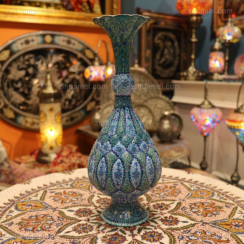 • minaA级花瓶30CM伊朗传统铜胎珐琅工艺伊朗纯手工米娜mina花瓶made in Iran