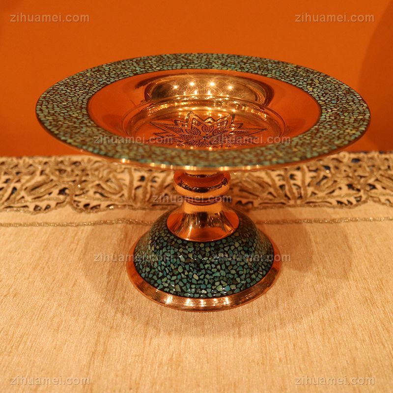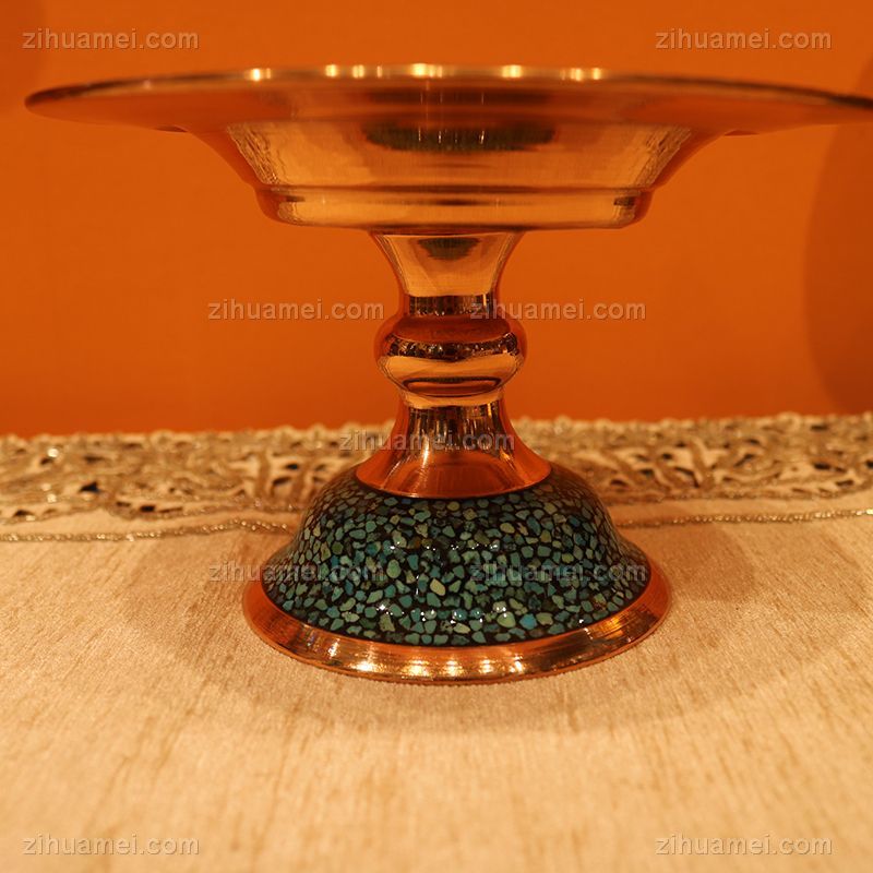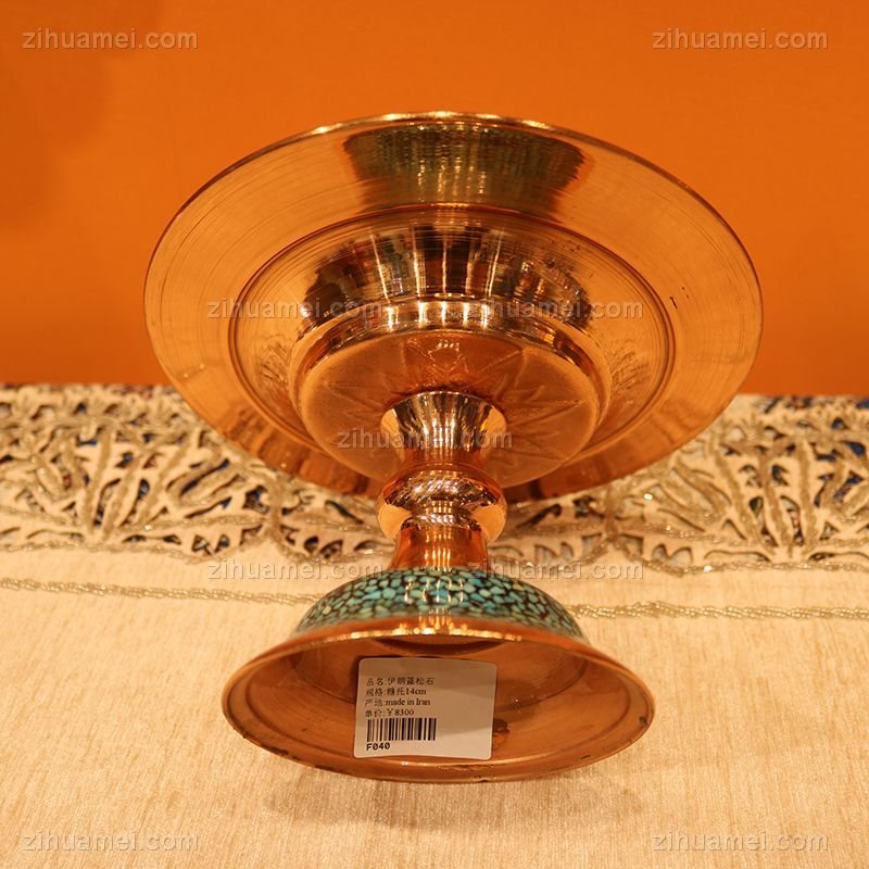 • 伊朗蓝松石糖托14CM伊朗传统铜胎珐琅工艺蓝松石是大海和蓝天的精灵被人们当成护身符