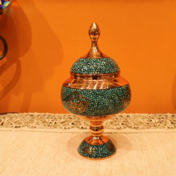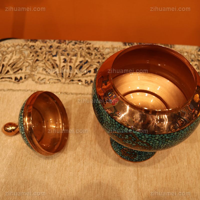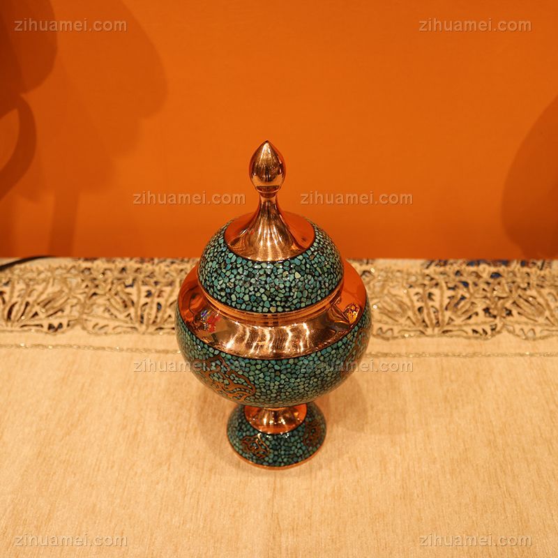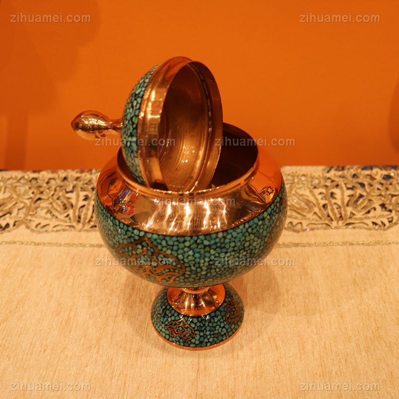 • 伊朗蓝松石糖罐25CM伊朗传统铜胎珐琅工艺蓝松石是大海和蓝天的精灵被人们当成护身符