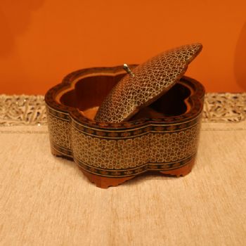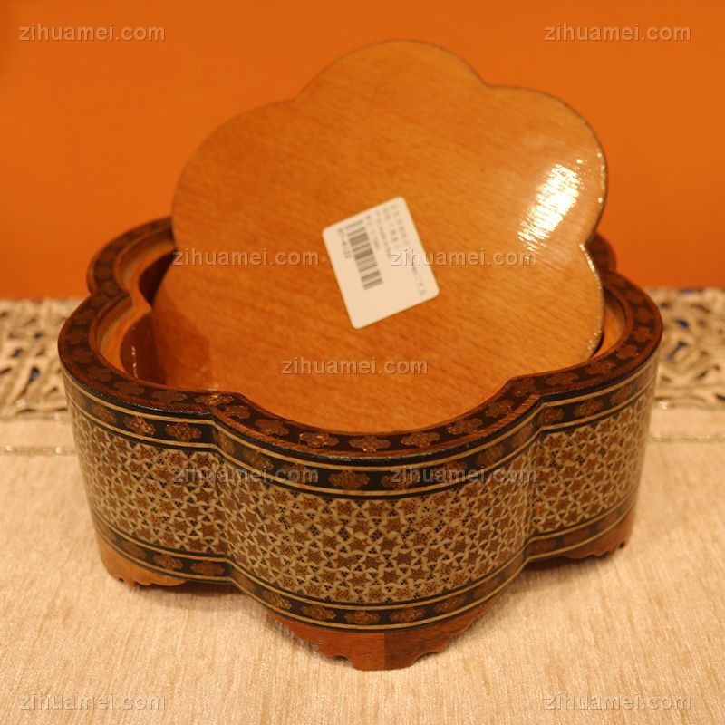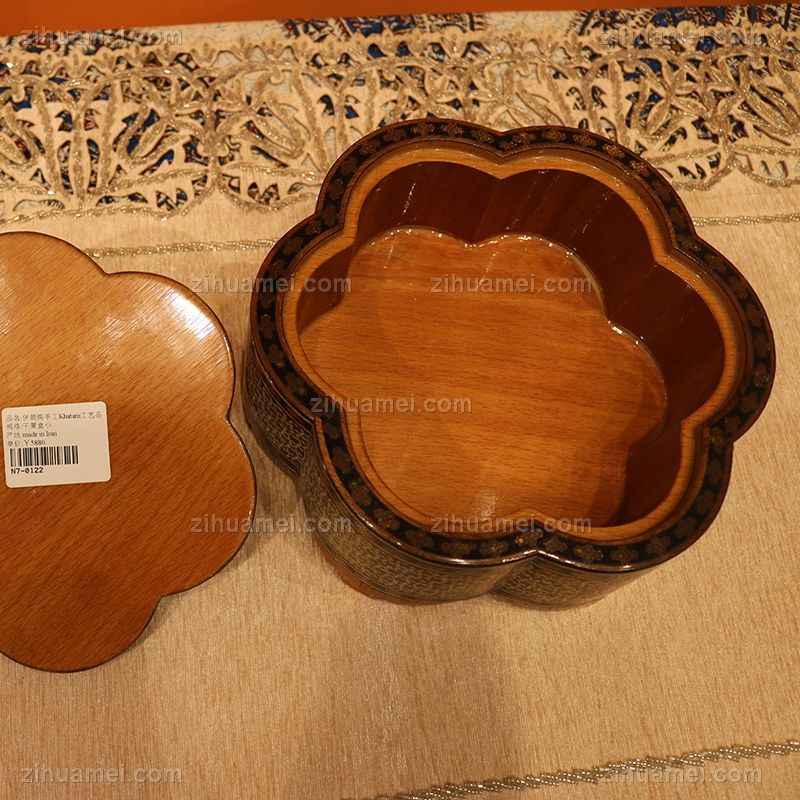 伊朗的手工艺品中最出名的莫过于米娜(mina),Khatam和波斯地毯。Khatam的镶嵌工艺(moarraq)是手工最复杂的木制品种类之一。在槟榔、核桃、柏树和松树等木料上嵌入动物骨头、贝壳、象牙、铜、银和金等材质的细微小片,完工后上漆。真正的波斯Khatam不特意涂颜色———呈现出的颜色完全来自原材料! Khatam 纸巾盒,优雅天然,成就品“质”。款式多样,满足多种需求。