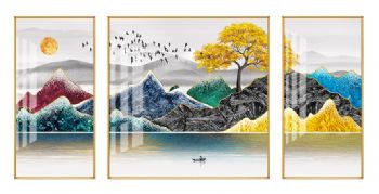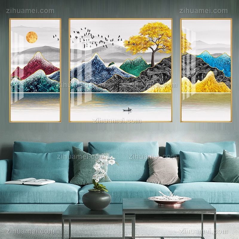 • 现代简约北欧金山抽象客厅装饰画三联画横幅晶瓷画