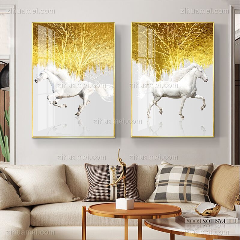 晶瓷与金属的结合,诠释家居装饰新风尚。晶瓷画,顾名思义不但有像水晶一样的通透,更有像玉瓷一样的无暇。画与画固为一体,中间没有空气与杂质、晶莹剔透、碧洁无暇。