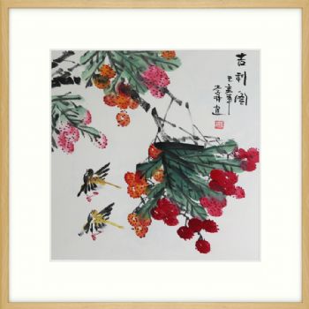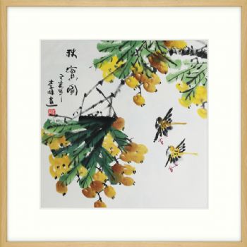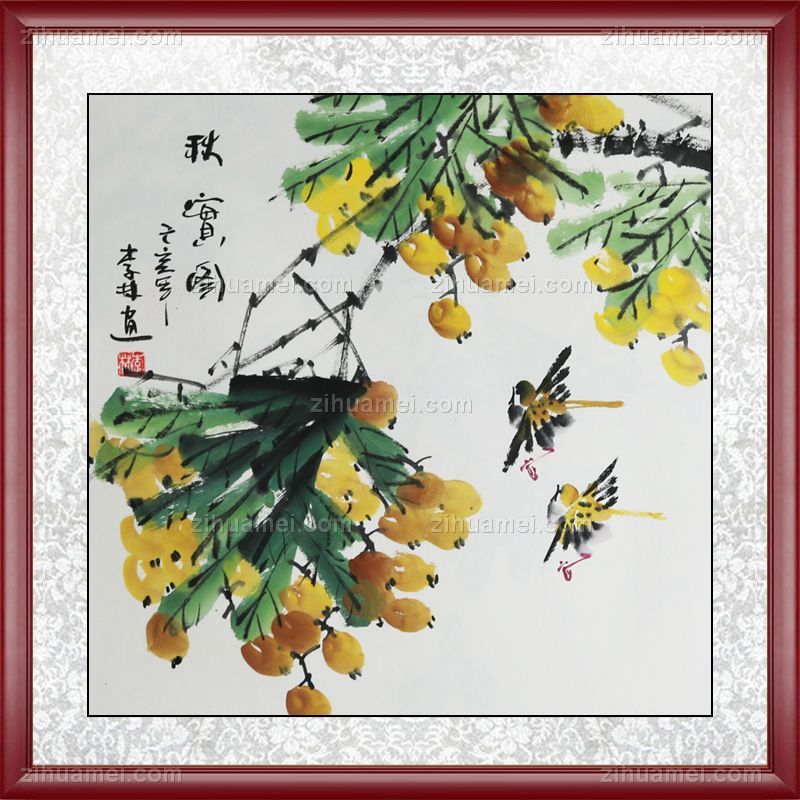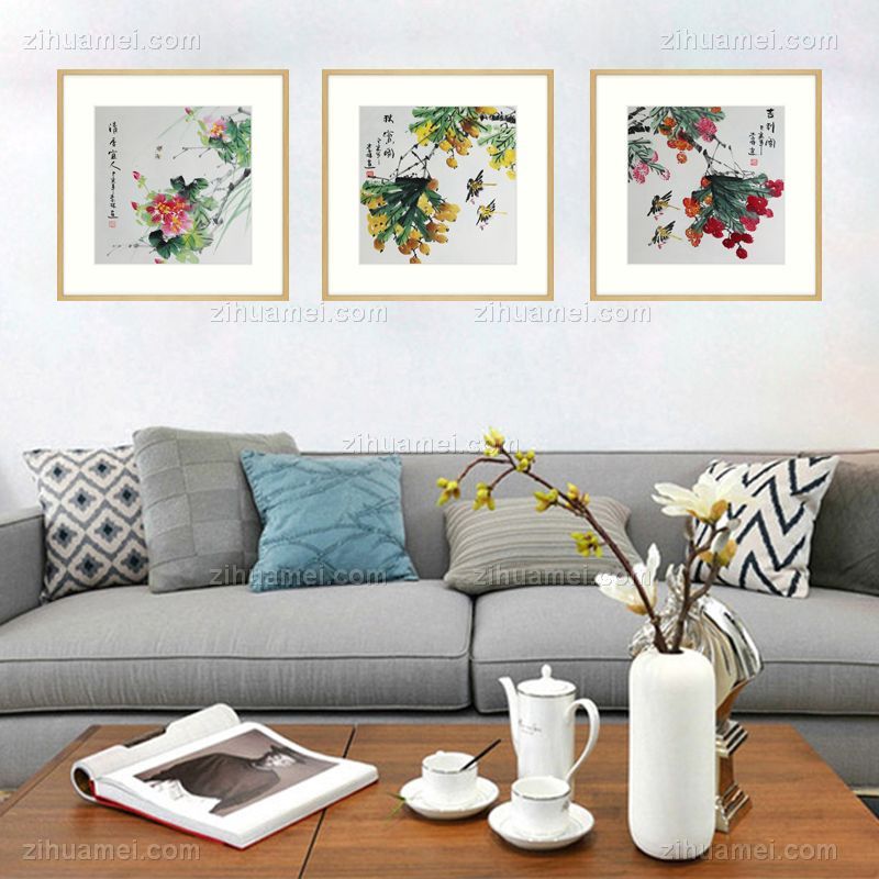• 画家李林三尺斗方花鸟画百分百手绘适合客厅餐厅挂画实木框三联画
