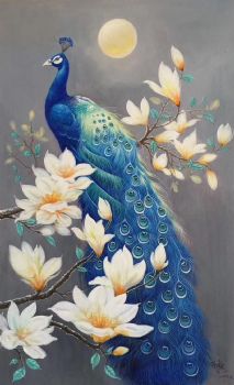 手绘油画中式油画富贵孔雀