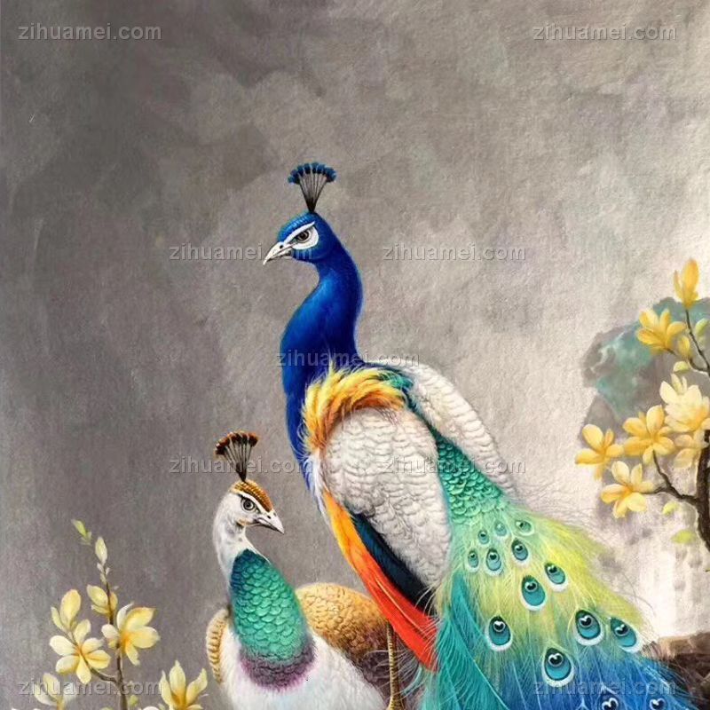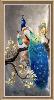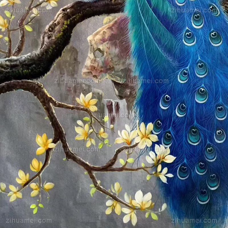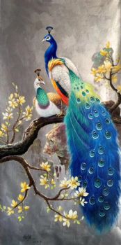 富贵孔雀中式手绘油画