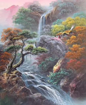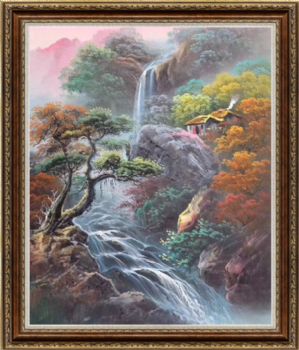 纯手绘风景油画山水画聚宝盆风景油画实木画框 手绘