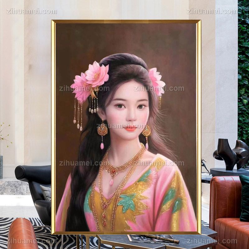 纯手绘人物油画美女图肖像油画金色实木画框 手绘