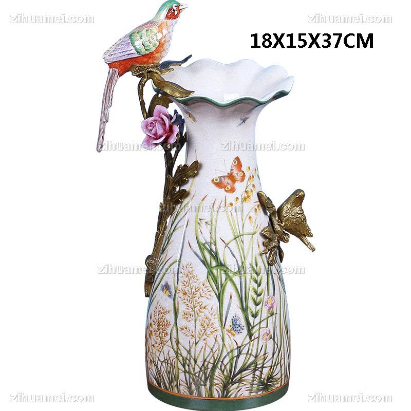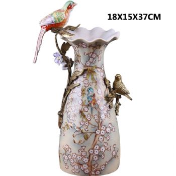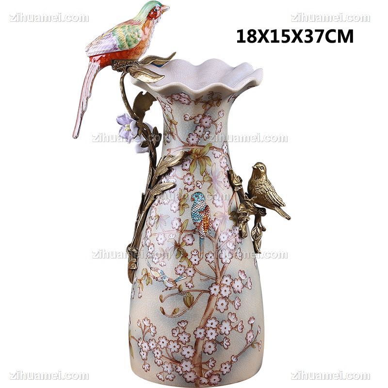 • 创意中式铜陶瓷门厅客厅玄关桌面装饰花器 餐厅壁炉台面花插瓶