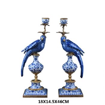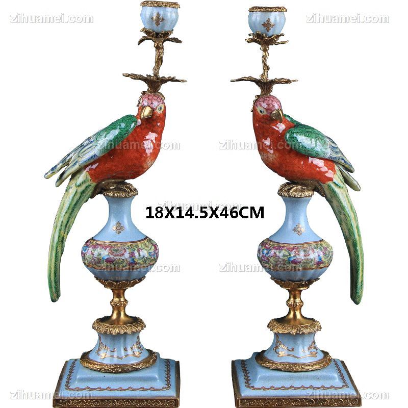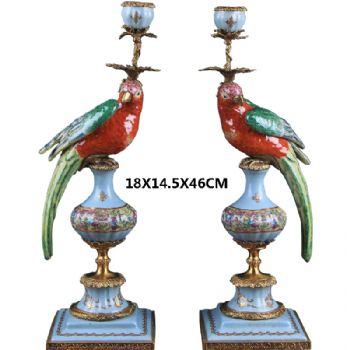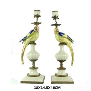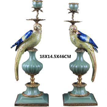 • 新中式工艺品鹦鹉烛台摆件陶瓷配铜古典风格