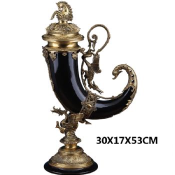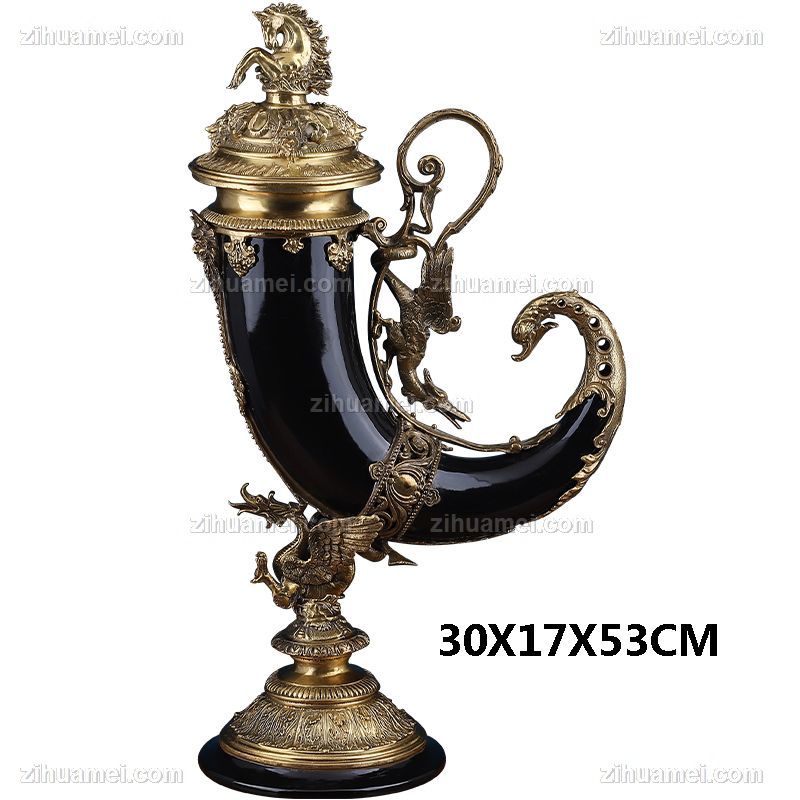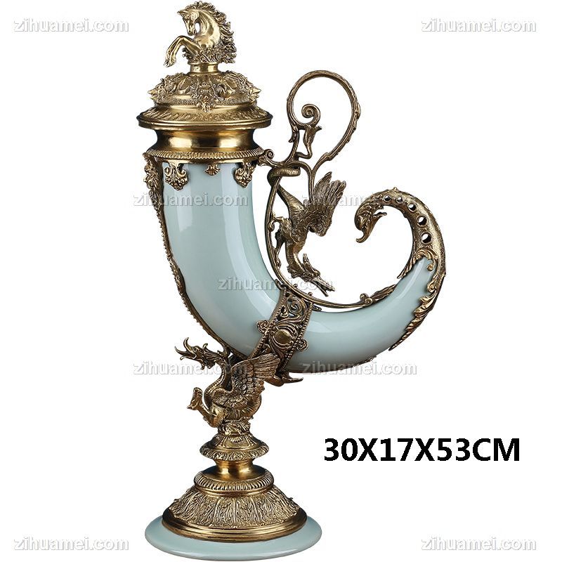 • 号角盖坛古典风格陶瓷配铜摆件新中式工艺