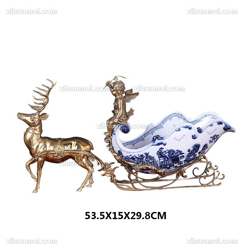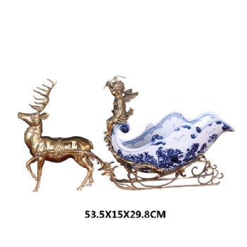 陶瓷配铜摆件