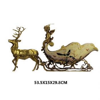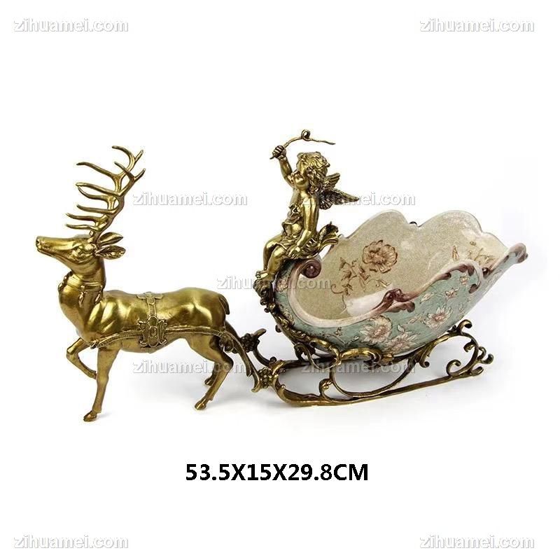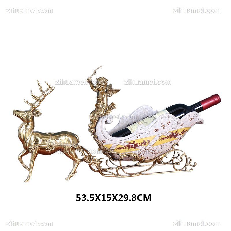 • 欧式创意纯铜鹿拉车红酒架工艺品高档会所客厅酒柜餐桌装饰摆件