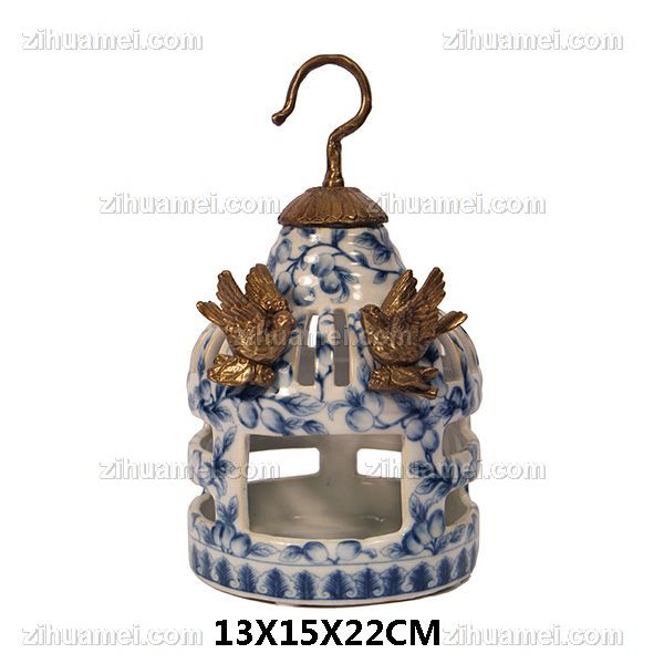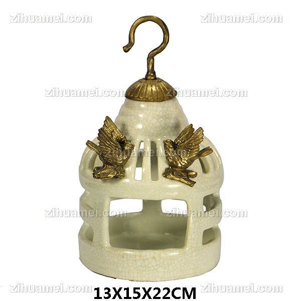 • 鸟笼摆件欧式流苏装饰陶瓷配铜工艺品