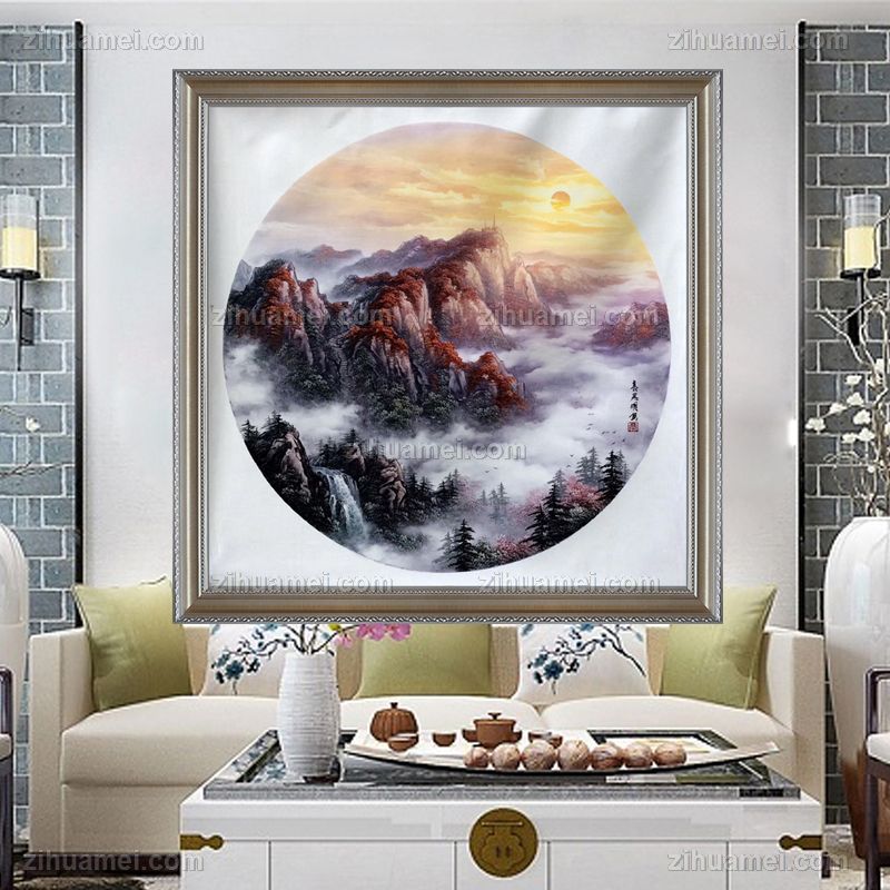 金山聚宝盆山水风景油画纯手绘大厅山水风景油画 手绘