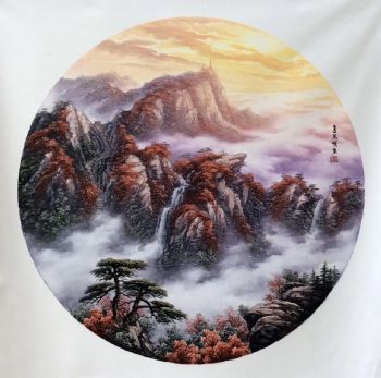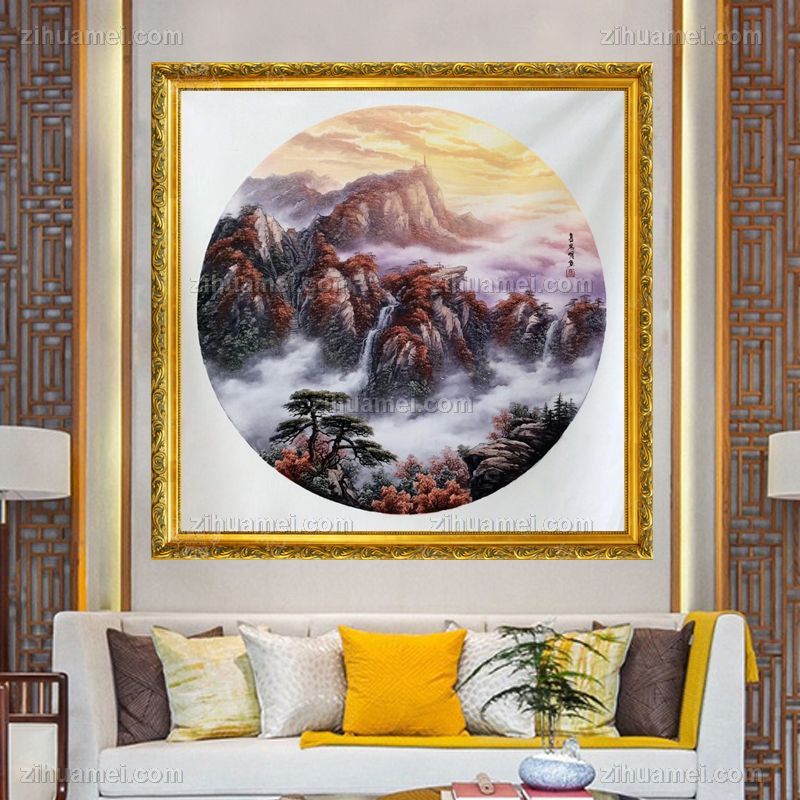 • 聚宝盆 圆形画芯 油画风景实力派画家 手绘油画 刀画 山水油画 家庭挂画 办公室挂画 酒店挂画
