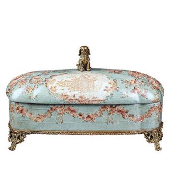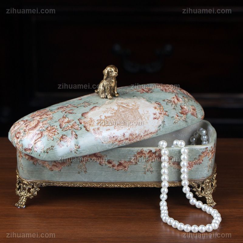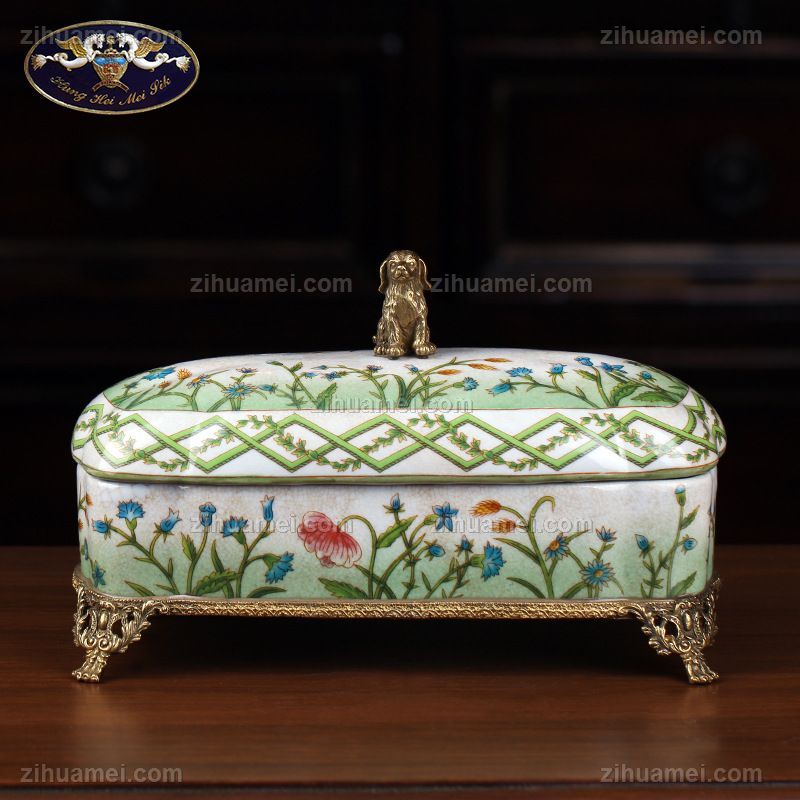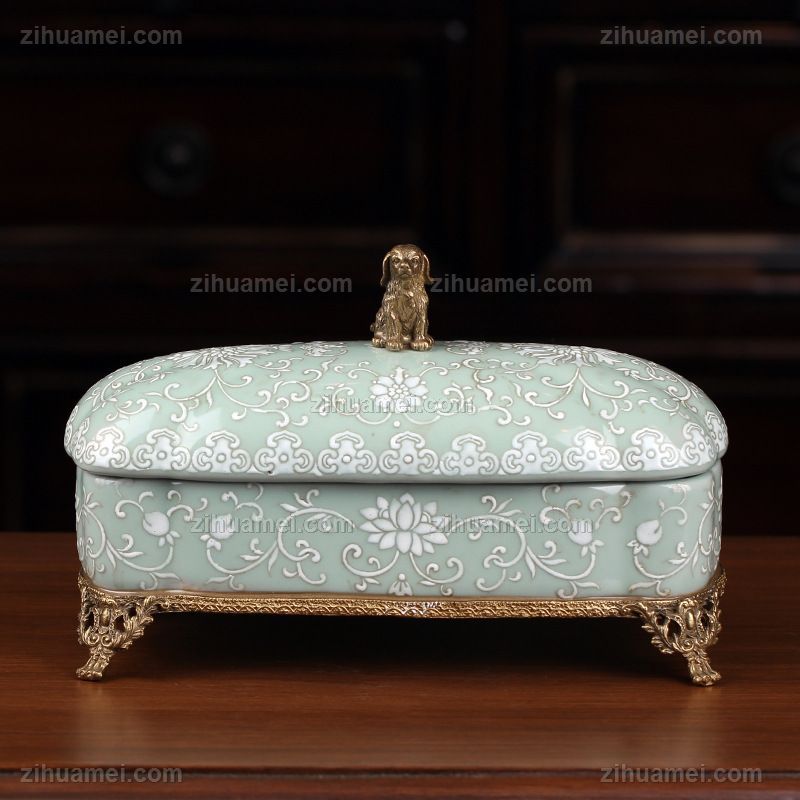 • 陶瓷配铜创意艺术饰品盒 美式首饰盒家居饰品彩绘瓷器桌面摆件
