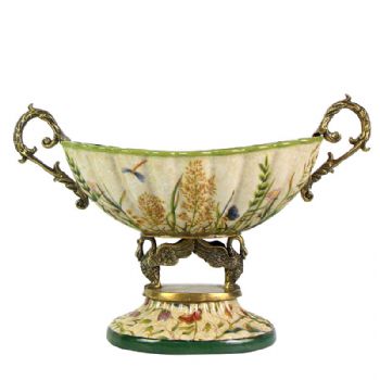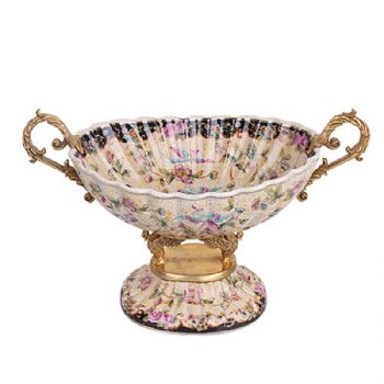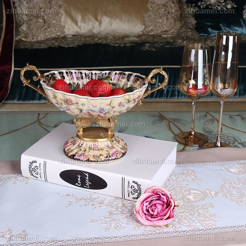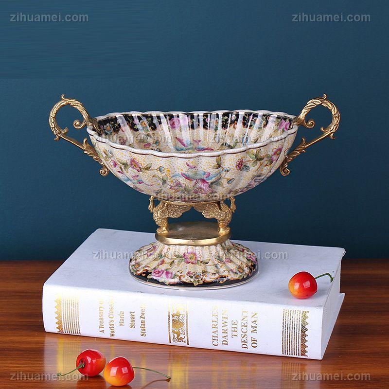 • 欧式手绘陶瓷加铜果盘 家居客厅果盆别墅轻奢饰品装饰摆件