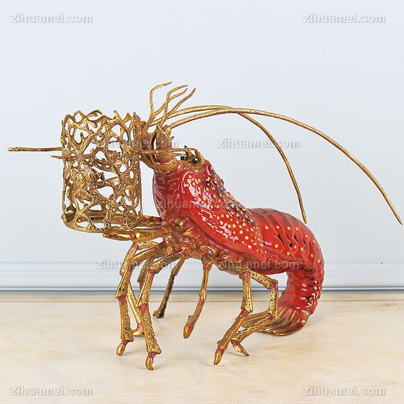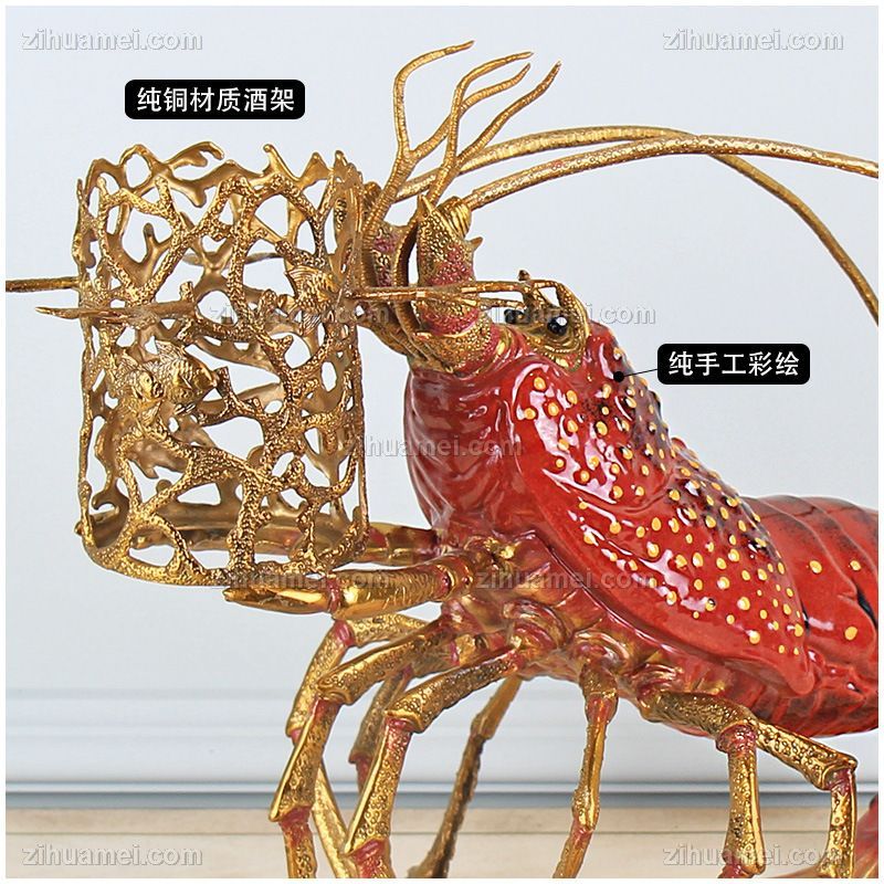 • 欧式陶瓷镶铜大龙虾红酒架工艺品 高档会所客厅酒柜餐桌装饰摆件