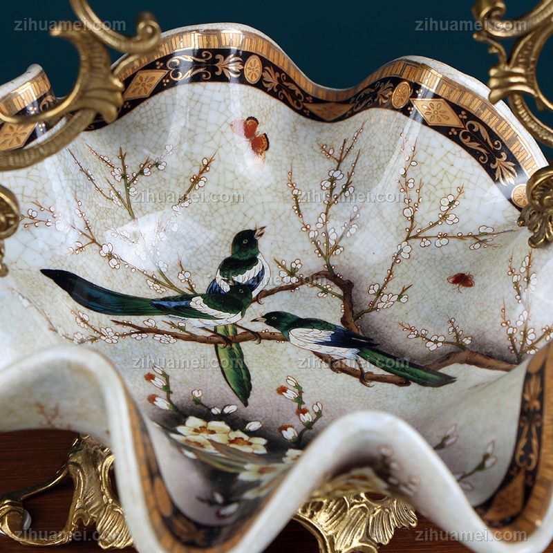 在字画美拥有精美的陶瓷配铜作品如下:陶瓷配铜摆件、陶瓷配铜摆盘、陶瓷配铜挂盘、陶瓷配铜壁饰、陶瓷配铜笔筒、陶瓷配铜动物摆件、陶瓷配铜盖盒、陶瓷配铜盖坛、陶瓷配铜果盘、陶瓷配铜果盆、陶瓷配铜果碟、陶瓷配铜果篮、陶瓷配铜花瓶、陶瓷配铜花插、陶瓷配铜酒架、陶瓷配铜书立、陶瓷配铜香薰盒、陶瓷配铜台灯、陶瓷配铜托盘、陶瓷配铜烟灰缸、陶瓷配铜纸巾盒、陶瓷配铜钟座、陶瓷配铜烛台、陶瓷配铜家具,每一件都是精心之作,艺术臻品。