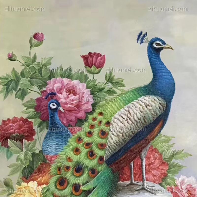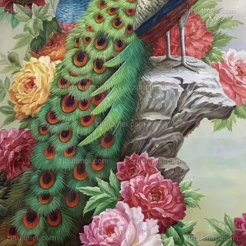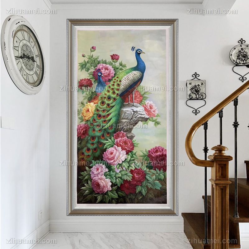 • 花鸟画纯手工手绘孔雀油画中式客厅玄关走廊卧室挂画油画风景动物油画