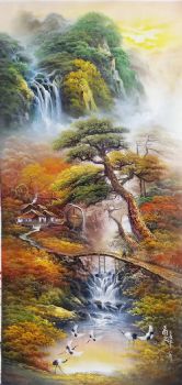 • 竖幅油画 适合玄关的油画 风水油画 中式油画风景手绘大芬油画村油画精品