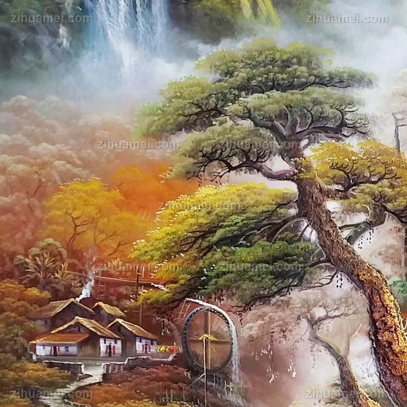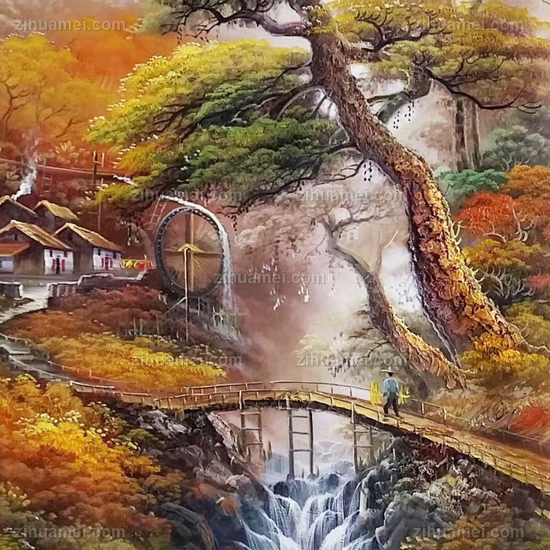 纯手绘风景油画山水画聚宝盆风景油画实木画框 手绘