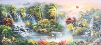 金山聚宝盆山水风景油画纯手绘大厅山水风景油画 手绘
